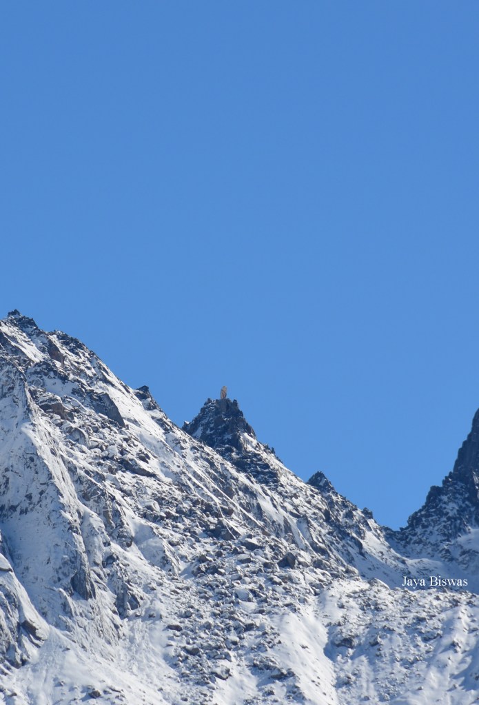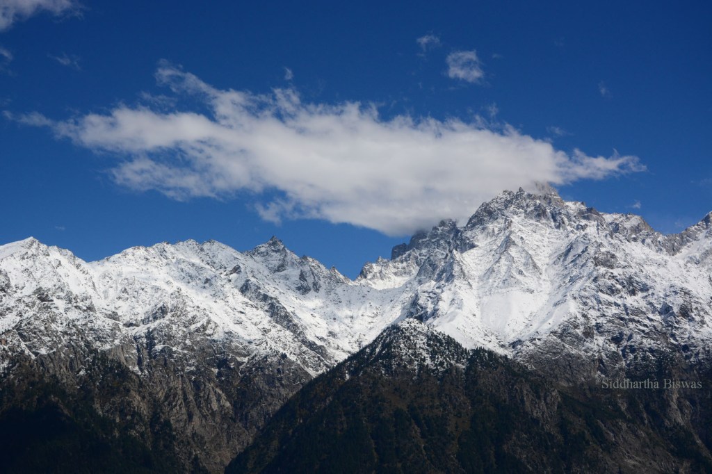 Kinnaur Kailash is the smaller crest among the more mighty ones. We had initially thought that the largest peak might be the one. It was because this Mount looks like the Holy Kailash Mountain in Tibet (a trip that is firmly in my bucket list), but that is not at all so. The smaller bulge was the Kinnaur Kailash, as a large Lingam shaped rock is magically placed on the edge at the top. Needless to say that it is fascinating.