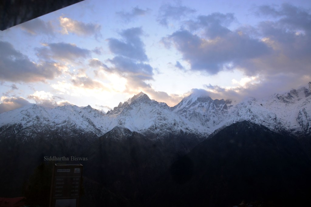 Kalpa was everything we had hoped for. Keeping three days there had raised a few travel-agency eyebrows. A lot of people like to shoot in and out (with mobile cameras these days, which is good enough I guess) and tick off the place from their lists, but we like to savour and relax. And of course, we had booked an expensive room to recover from the Kaza strain. Sight-seeing in Kaza demanded time, Kalpa did not. There is not much to “see” here. A few small temples, one Monastery, the suicide point (something that seems to be favourite with many hill stations), some orchards, and you are done. But we had kept three nights and we did not think a second of it as wasted. The Kinner Kailash, belonging to the HPTDC, is brilliantly located and gives a magnificent view of the entire range right from the rooms. Not only our Cozy Double bed (we were so impressed with the room, I made an amateurish video clearly presenting my childish delight, this is the link), but each room gives you a peek at the peaks.