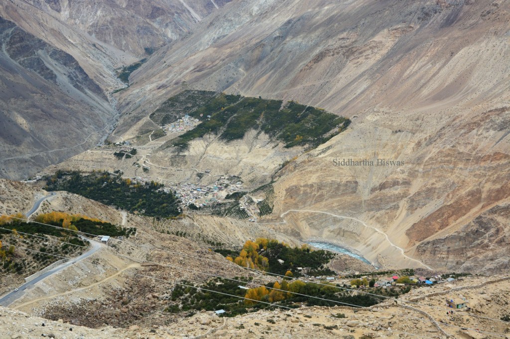 After Sutlej (Shatadru for a lot of people) took over Spiti’s identity, the path became less wild, though equally enchanting. Khab Sangam, where Spiti met Sutlej, is a beautifully barren place featuring fantastic rock formations. If you so wish, you can see this short video. Stopping here is made mandatory by its marvellousness.