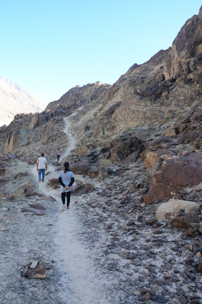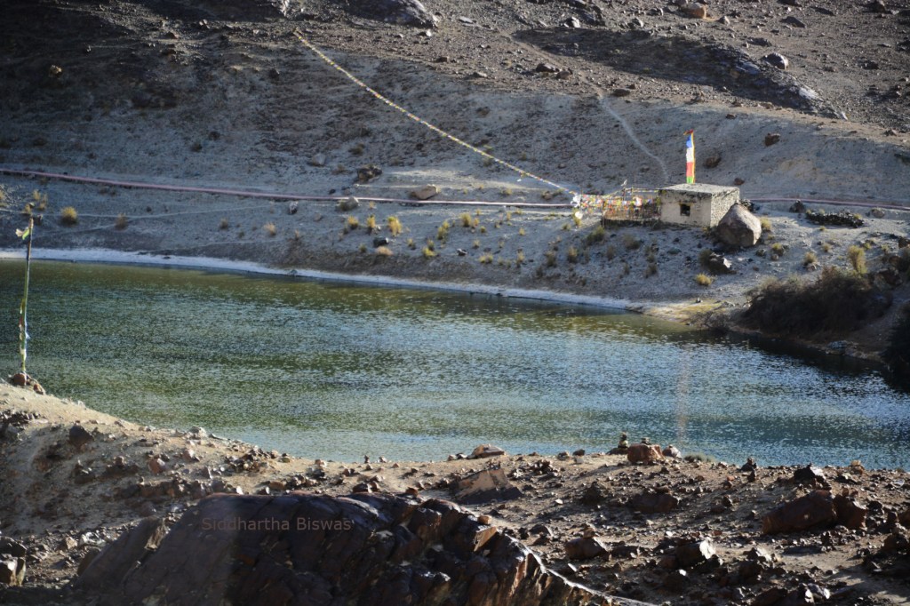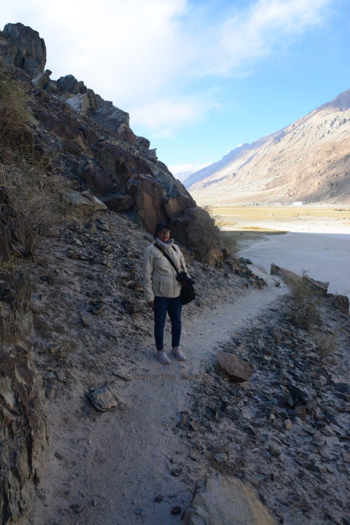 Sumur has one of the oldest monasteries of this region. Unfortunately we were late in coming back from Siachen and missed the timing. We had gone to Yarab Tso, a magical lake hidden within what looks like a sudden large rock formation. The formation is such, it creates a pool of water within, and no one can see it even from the riverside. It is considered holy. There is a slight climb through a path full of loose pebbles and a few steep curves. People with vertigo should be careful. Jaya’s presence allows me to tread through these paths with ease, just as her presence allows me to go through everything else without losing hope.