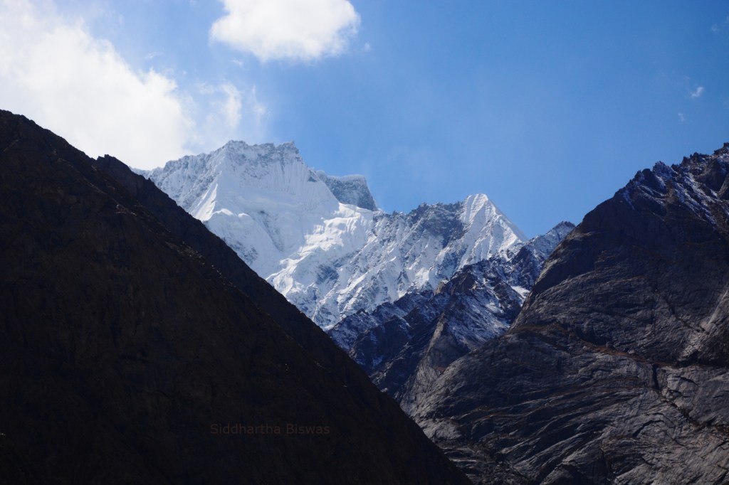 In the photograph, the small black and white patch right in the middle is the snout of the glacier. As a matter of fact, tourists were allowed to go quite close to the glacier. But some chump took videos and posted them on social media, despite there being special instructions forbidding all that. As a result, you can now go only till the gate of the base camp.