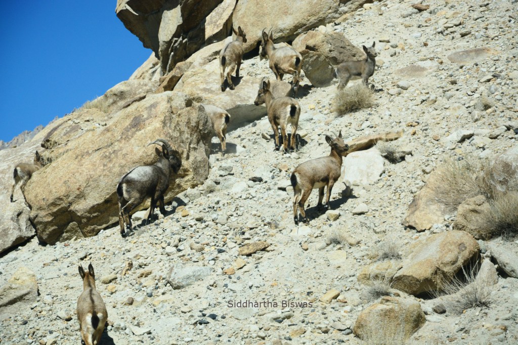 In fact, Siachen base camp, the point till which tourists are allowed to go, is only about a hundred kilometers from the oft-visited Nubra Valley. People throng the Sand Dunes of Nubra. Only a handful go to Siachen. Which is a blessing, for on this road less travelled we were fortunate enough to see a herd of Ibex.