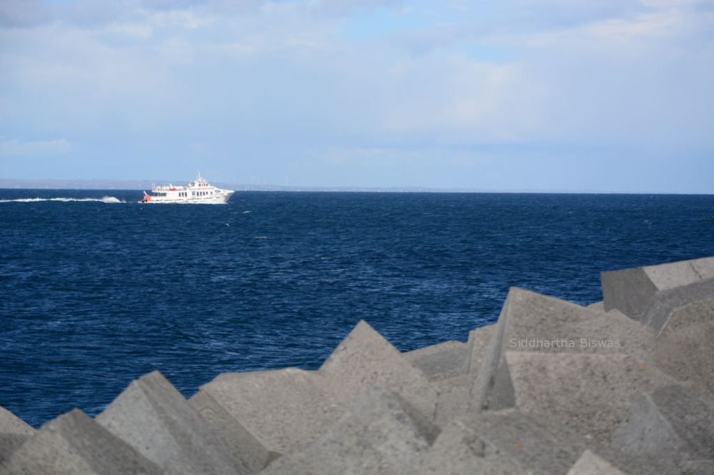 We were happy that Shauna, our host at Westwinds Guestlodge had remembered our choice while booking the tickets for us. The ferry had an enclosed deck where we sat for a moment, but when the journey started we realized that photo opportunities were nil. So we moved to the upper deck and had a thrilling journey taking photos and making videos with one hand, the other hand clung to the railings for dear life. [You can see the whole video here.] The amount of ups and downs and rolls would actually challenge a conservative roller coaster. As a matter of fact, I realized why those rides are called roller coasters! The sea makes you realize whatever rolls you may face in life, it is the coast that is of comfort for most of us mammals.