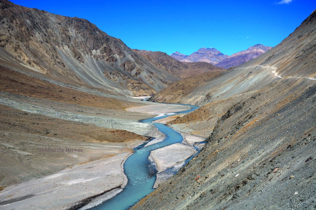 After Kunzum Pass you will have the company of a tributary of the river Spiti. In fact, it is one of the three main sources and the map calls it Spiti as well. The place where the two meet to create the mighty Spiti riverbed is fascinating to say the least.
